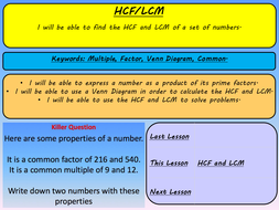 Interactive with great demonstrations and mini whiteboard tasks. Tes global ltd is registered in england company no 02017289 with its registered office at 26 red lion square london wc1r 4hq. A lesson based on using prime factor decomposition venn diagrams to find the hcf lcm of a set of numbers. Calculating the hcf and lcm of 2 or more numbers by using prime decomposition and venn diagrams.