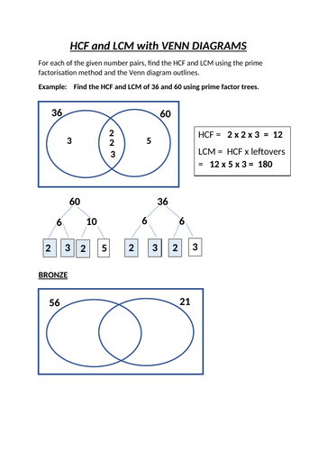 Now we have to draw two circles as shown above. Hcf and lcm using venn diagrams worksheet. 3 to 4 lessons on primes prime factors and hcf lcm using venn diagrams. I hope you find it a useful starting point.