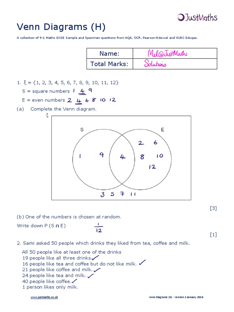 Our venn diagram worksheets are made for primary 6 and high school math students. These workbooks are perfect for both kids and grownups to make use of. Give the venn diagram suitable labels for the rectangle and the circles too and then answer the questions. Questions venn diagrams with two sets question 1.